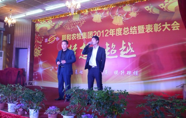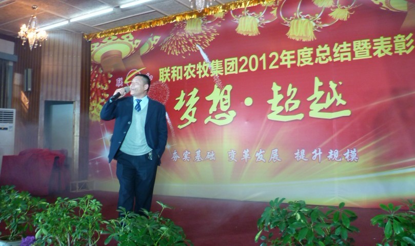 編后語:如果說人生的精彩是因?yàn)橛袎?mèng)想,要是夢(mèng)想一旦成真,那就精彩萬分。聯(lián)和農(nóng)牧集團(tuán)成立三年來,從一個(gè)小小的工廠發(fā)展到目前擁有8個(gè)分公司,員工1500多人的大型專業(yè)化生產(chǎn)豬飼料的農(nóng)牧集團(tuán)。在王總裁及各位領(lǐng)導(dǎo)的帶領(lǐng)下,全體聯(lián)和人的辛勤的付出及努力下,公司一直以來堅(jiān)持貫徹實(shí)施獨(dú)特的“420221和母豬6階段科學(xué)飼養(yǎng)法”的飼養(yǎng)模式,推行以“科技領(lǐng)先,微利經(jīng)營(yíng),密集開發(fā),服務(wù)營(yíng)銷”的經(jīng)營(yíng)理念,堅(jiān)持專業(yè)化、產(chǎn)業(yè)化的運(yùn)作,堅(jiān)持“聯(lián)合創(chuàng)造,和諧發(fā)展,服務(wù)養(yǎng)殖,共創(chuàng)未來”的發(fā)展理念,使得聯(lián)和人有了今天的成就。2012年集團(tuán)豬料銷量突破30萬噸,同比增長(zhǎng)了160%,利潤(rùn)達(dá)成100%,同比增長(zhǎng)120%,并逐步打造了一支戰(zhàn)斗力強(qiáng)的“聯(lián)和團(tuán)隊(duì)”,形成了一個(gè)具有萬千養(yǎng)戶資源的獨(dú)特“專業(yè)做好豬料”的聯(lián)和品牌。展望未來,我們滿懷豪情。2013年聯(lián)和農(nóng)牧的目標(biāo)是要做豬料50萬噸,在這新的一年中,我們相信聯(lián)和農(nóng)牧的發(fā)展必將如如沐春風(fēng),滾滾向前!最后祝愿我們聯(lián)和農(nóng)牧集團(tuán)明天更美好!