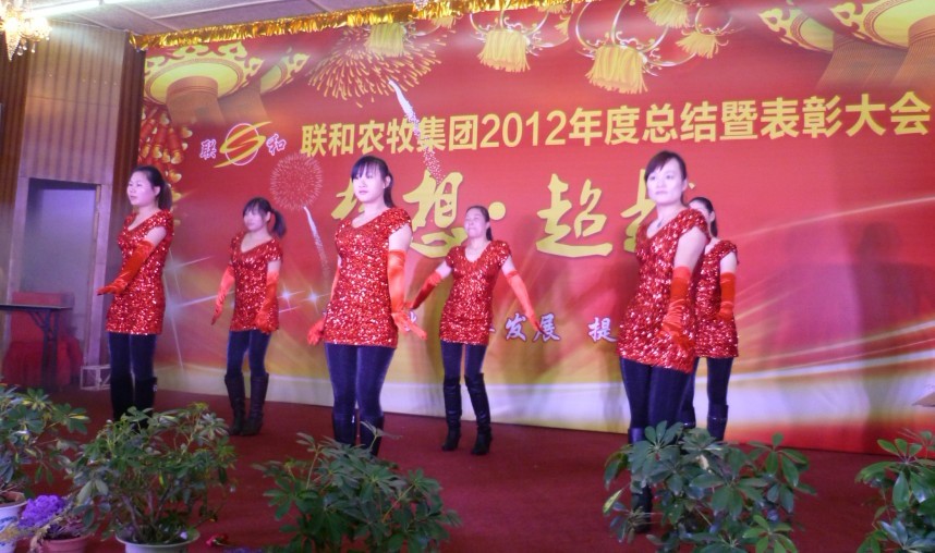 上午8:30分,隨著一曲充滿激情雄壯、氣勢(shì)澎湃的《超越夢(mèng)想》的歌聲和激情四射的現(xiàn)代舞蹈拉開了聯(lián)和農(nóng)牧集團(tuán)2012年度總結(jié)表彰大會(huì)的帷幕。南昌聯(lián)和飼料公司奉獻(xiàn)的小品《稱豬實(shí)證》將聯(lián)和營(yíng)銷精英在市場(chǎng)上1131的基礎(chǔ)工作搬到舞臺(tái)上活靈活現(xiàn)、淋漓精致的展現(xiàn)贏得臺(tái)下全體聯(lián)和人附和和掌聲,這是聯(lián)和人務(wù)實(shí)肯干,是聯(lián)和人誠(chéng)信協(xié)作的企業(yè)精神的最好的踐行和體現(xiàn)。由泰和聯(lián)和飼料公司演出的現(xiàn)代舞《NOBODY》,激情洋溢,優(yōu)美的舞姿,曼妙的身材,正如我們一線營(yíng)銷精英在市場(chǎng)上時(shí)刻充滿著活力和激情一樣,贏得臺(tái)下尖叫連連和陣陣歡呼。由南昌聯(lián)和實(shí)業(yè)推選一曲笛子獨(dú)奏《天路》將我們思緒平靜下來,慢慢聆聽,使聯(lián)和人在這歡樂美滿的幸福時(shí)刻聆聽到了我們來自一線基層員工對(duì)公司祝福,暖慰著人心。由新干聯(lián)和公司演出一曲《好兄弟》唱出了所有聯(lián)和營(yíng)銷精英的心聲,暖慰人心、寄托期望、書寫真誠(chéng)。由總公司生產(chǎn)總監(jiān)樂總奉上的一曲《神奇的九寨》使聯(lián)和人在這個(gè)歡樂時(shí)刻、振奮人心的日子,倍感激動(dòng),唱出了聯(lián)和人美好的明天,將此次大會(huì)推到高潮,掌聲鮮花不斷。所有的表演沒有絲毫的造作、沒有絲毫的矯情,在雄渾有力的歌聲、歡笑聲、吶喊聲、和熱烈的掌聲中,聯(lián)和人盡情的抒發(fā)著自己對(duì)聯(lián)和的祝福和期望。