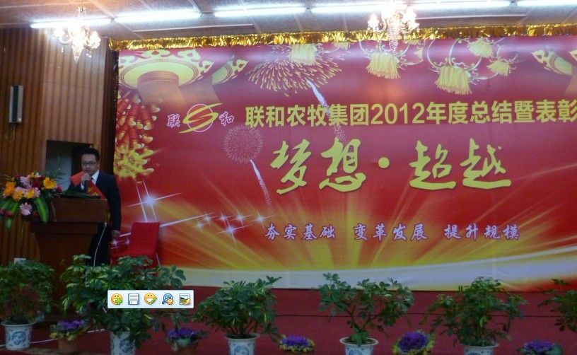 本刊訊 2013年元月18日,聯(lián)和農(nóng)牧集團2012年度總結(jié)表彰大會在南昌翠林高爾夫酒店隆重召開。表彰獲得2012年度的集團先進單位、優(yōu)秀主管、優(yōu)秀員工、銷售精英等37人和2個先進單位。來自集團總部各部門總監(jiān)主管、新干聯(lián)和、南昌聯(lián)和實業(yè)、泰和聯(lián)和、南昌聯(lián)和飼料、贛州聯(lián)和、云南聯(lián)創(chuàng)、云南和美、貴州和美公司等銷售精英代表、優(yōu)秀主管代表、優(yōu)秀員工代表近300人。集團總裁王曉琳參加表彰大會,并為先進集體單位新干聯(lián)和公司、云南聯(lián)創(chuàng)公司頒發(fā)榮譽證書和獎牌。