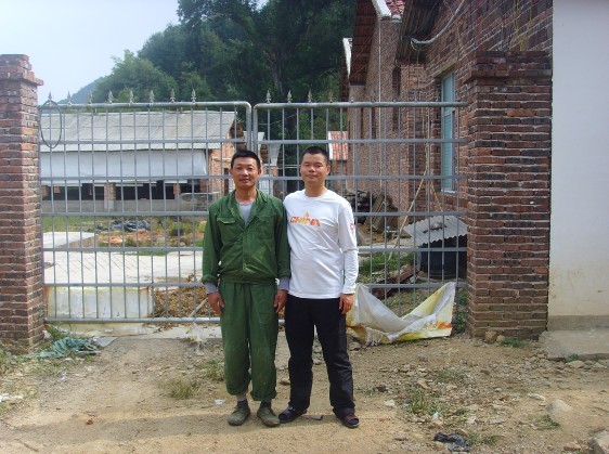 翟總與陳場(chǎng)長(zhǎng)在豬場(chǎng)門口親密合影