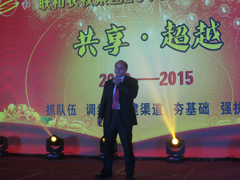 晚會(huì)伊始,巨大的LED屏幕循環(huán)播放著聯(lián)和農(nóng)牧成立五周年來(lái)的點(diǎn)點(diǎn)滴滴。18:00,晚會(huì)在《超越夢(mèng)想》高昂的音樂聲中隆重開幕。晚會(huì)開始,聯(lián)和農(nóng)牧集團(tuán)總裁王曉林上臺(tái)致辭。王總裁對(duì)各位嘉賓的蒞臨表示熱烈的歡迎及衷心的感謝,并介紹了聯(lián)和農(nóng)牧集團(tuán)成立五周年以來(lái)的發(fā)展情況及未來(lái)的發(fā)展規(guī)劃。