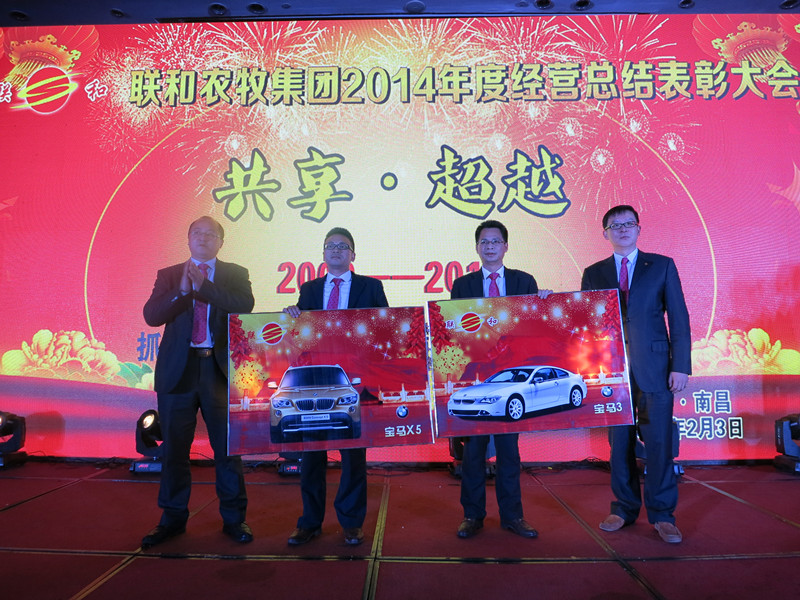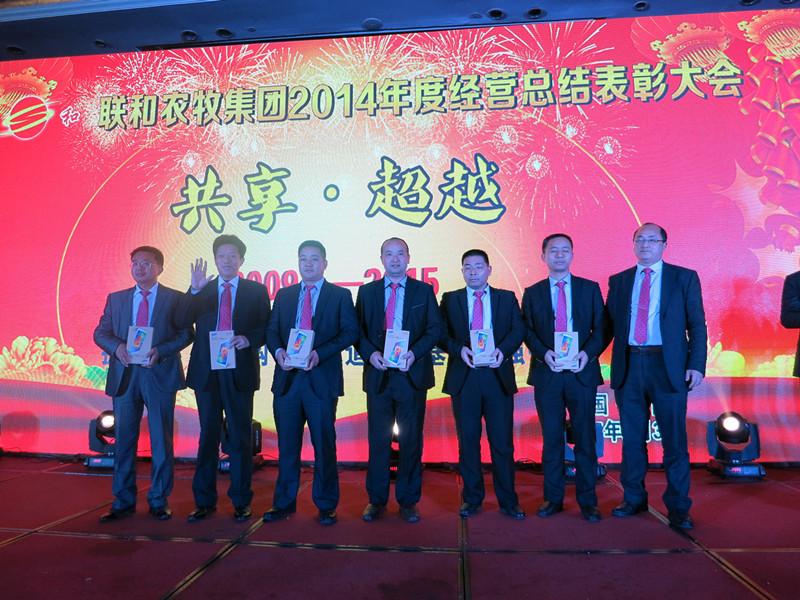 2015年2月3日,聯(lián)和農(nóng)牧集團(tuán)成立五周年晚會(huì)在濱江賓館的大會(huì)堂宴會(huì)廳隆重開幕。董事長(zhǎng)陶煦、集團(tuán)總裁王曉林、總部各部門負(fù)責(zé)人、各分子公司總經(jīng)理及員工共450余人參加此次晚會(huì)。此次大會(huì)也邀請(qǐng)到了江西農(nóng)業(yè)大學(xué)動(dòng)物科技學(xué)院院長(zhǎng)、 南昌市糧食局局長(zhǎng)、中糧集團(tuán)江西分公司總經(jīng)理、中航江西總經(jīng)理等40余位嘉賓。