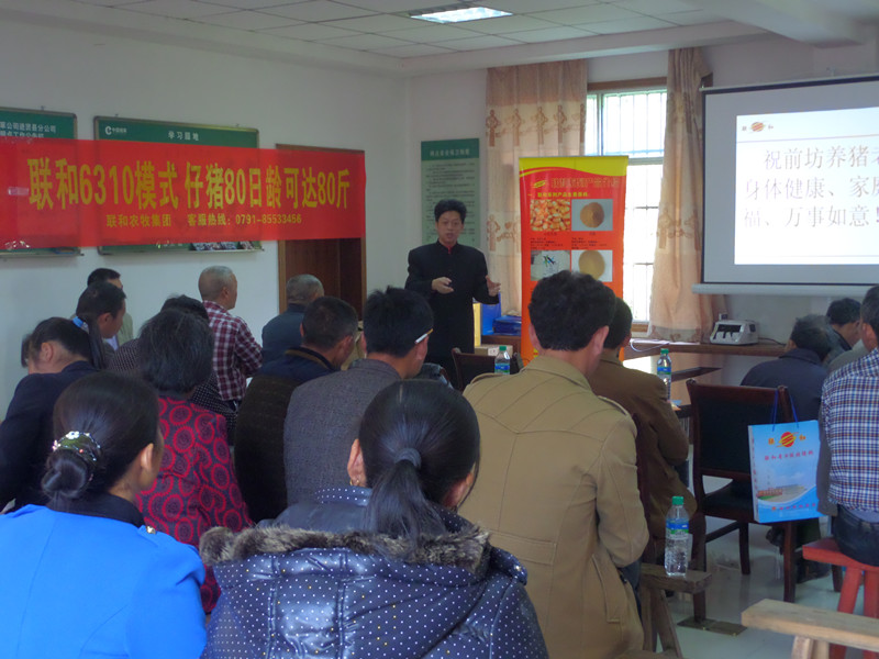 2015年4月11日,聯(lián)和農(nóng)牧集團進賢聯(lián)和營銷公司在進賢前坊鎮(zhèn)召開了養(yǎng)殖戶訂貨會。此次會議邀請到了來自進賢前坊鎮(zhèn)近80位養(yǎng)殖老板。這些老板中,有些老板已正在使用聯(lián)和飼料,也有部分老板是通過朋友了解聯(lián)和飼料的效果而聞名前來的。