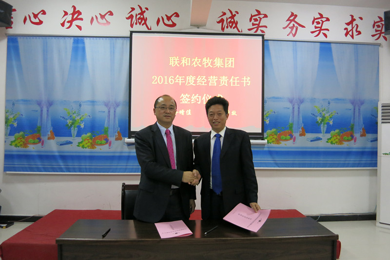 最后,集團總裁王曉林與各公司總經(jīng)理進行了2016年度經(jīng)營責(zé)任書的簽約儀式,各公司總經(jīng)理鄭重承諾16年將全力以赴,保證各項任務(wù)百分百達成。