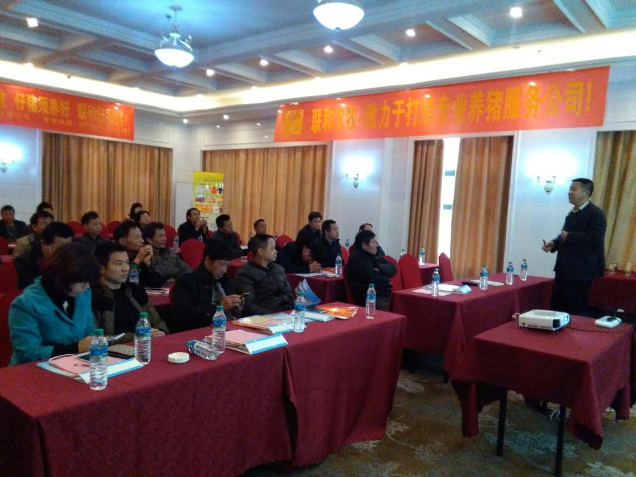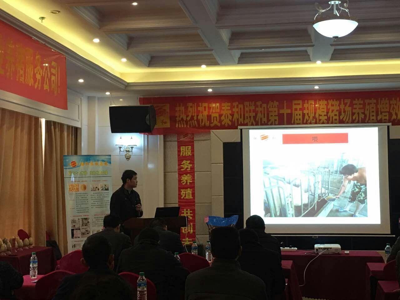 上午10:00會議正式開始,首先由泰和聯(lián)和總經(jīng)理陳文斌上臺致歡迎詞,代表泰和聯(lián)和公司全體員工對給位老板的蒞臨表示熱烈的歡迎和誠摯的感謝,陳總在會議上分析了當(dāng)前的大好形勢,講到規(guī)模豬場要增效賺大錢,既要加強豬場管理,又要注重飼料品質(zhì),建議大家不要一味對飼料產(chǎn)品追求價格低、政策大,因為“羊毛出在豬身上”的道理。然后劉立茂博士為大家講解了如何提高豬場效益做了詳細(xì)的講解,接著由泰和聯(lián)和葉菁華老師給大家講解關(guān)于提高仔豬存活率方面的內(nèi)容,并通過圖畫生動而易理解。會議期間不斷獲得在場各位老板的一陣陣掌聲,大家表示認(rèn)可公司講解豬場增效及提高仔豬存活率的知識,并對公司的新產(chǎn)品仔豬寶有了全新的認(rèn)識,對公司的產(chǎn)品的品質(zhì)充滿信心。